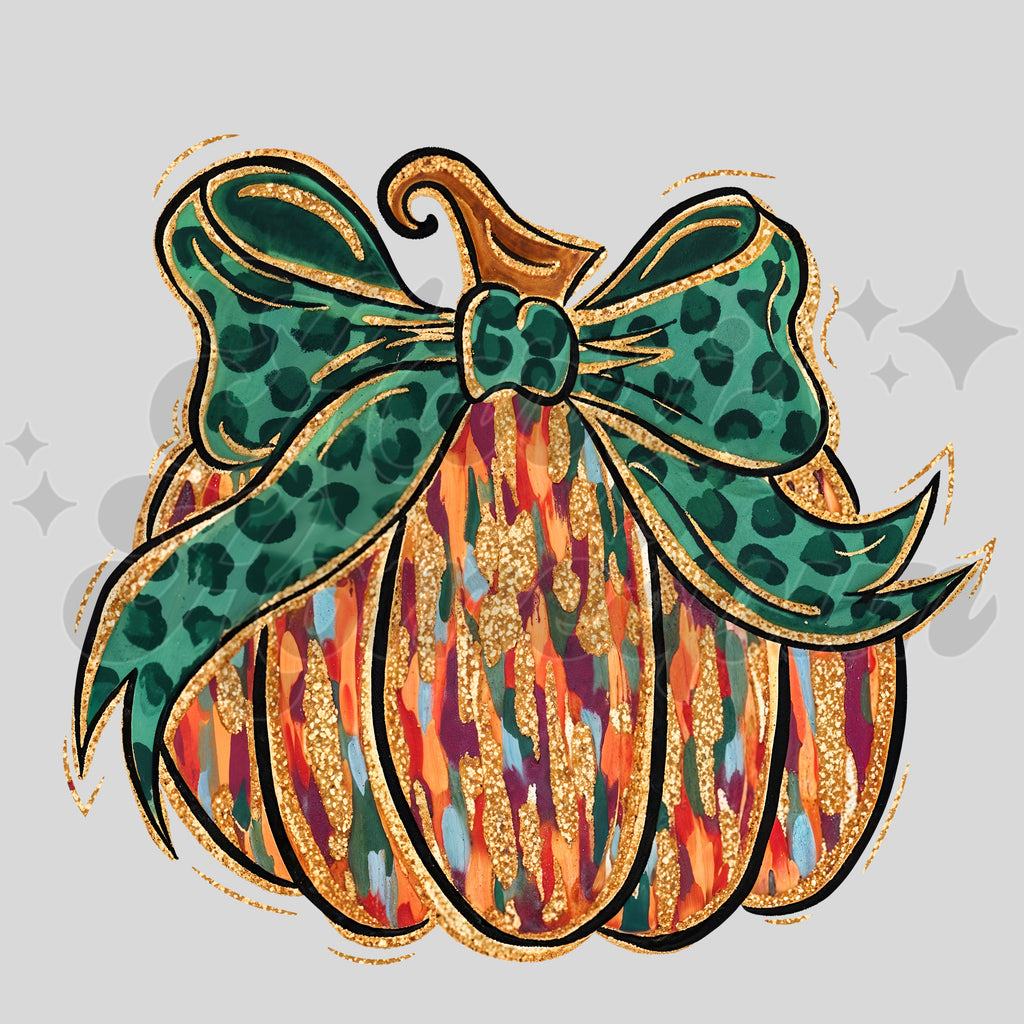 Brushstrokes Green Bow Pumpkin DTF Print