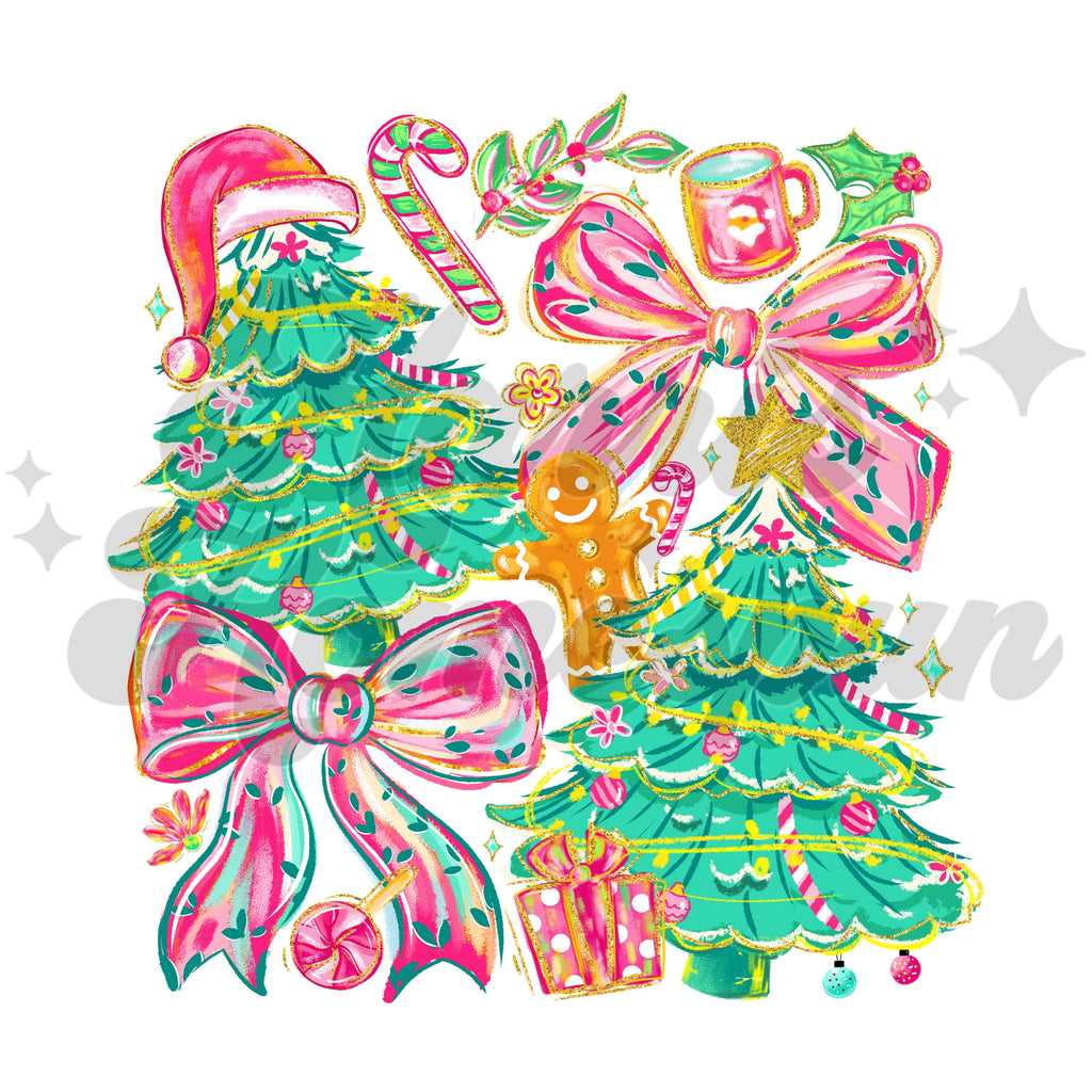 Neon Pink Trees and Bows DTF Print – Harris Homespun