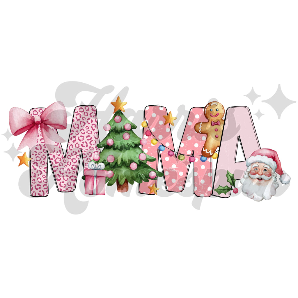 Pink Christmas MAMA DTF Print – Harris Homespun