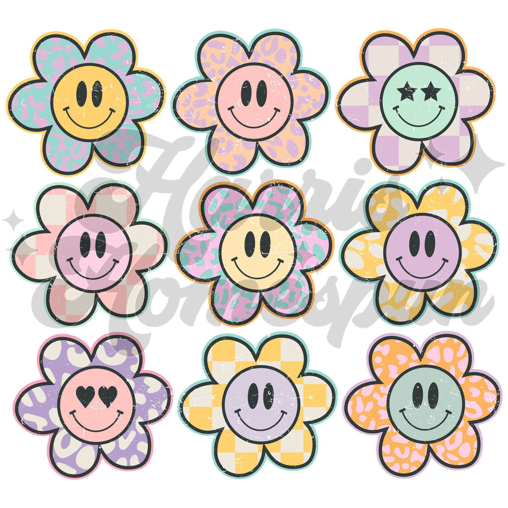 Pastel Colorful Smiley Flowers DTF Print – Harris Homespun